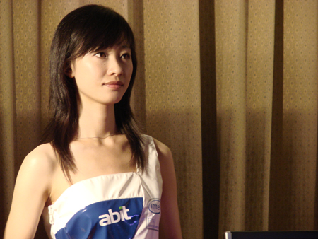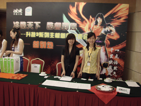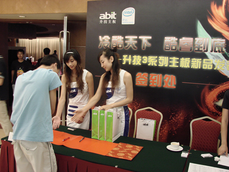 两位美女公关成为了会场中的一道靓丽风景