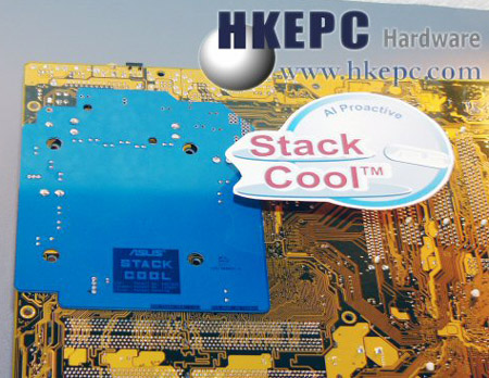 在Computex Taipei 2004 ASUSTek的展场中,Asus公开了其独家开发的Stack Cool技术,目的是要提高主机板的稳定性及超频能力,场中Asus的工作人员透露其主要是透过在主机板的底部安装一片铝片,把部份CPU的热力散至铝片上,此外铝片还有减低电子捍扰的作用。