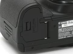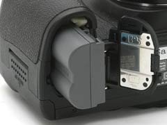 20D手柄底部是电池仓,20D的标配电池是BP-511A,拥有1390 mAh,比BP-511电量多了25%,工作时间10.3小时,而BP-511只有8.1小时。