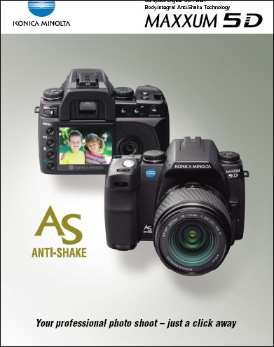 α-5 DIGITAL是柯尼卡美能达最新发布的拥有CCD位移防手抖功能的单反数码照相机(日本发售时型号为α-Sweet DIGITAL),这款产品将在8月下旬正式发售,机身价格预计在10万日元左右(约合人民币7500元),近期,小编得到可靠消息,相机专卖网已经开始预售这款柯尼卡美能达α-5 DIGITAL,价格仅为6480元,比预计价格低出一截,并且现在预约订货的用户均可获赠美能达原厂摄影包,非常超值。机不可失,失不再来,有兴趣的朋友现在就可以打电话010-66035852/66065680向相机专卖网咨询或订购。