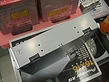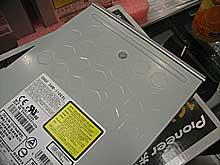 机身依旧是短款规格,顶部留有蜂巢形凹痕,标明该款刻录机具备先锋DVD刻录机所独有的蜂窝降噪系统,不仅保证了刻录机工作时的稳定发挥,同时也有效降低了噪音影响。面板中部有MULTI RECORDER的字样,和近期到货的松下SW-9585-C非常相似,该功能通过DVD-RAM技术,可以让光驱接上PC之后,内置光碟像硬盘一样直接使用,直接拖拽文件即可完成刻录。虽然速度上维持于5倍速,刻满4.7GB需要12分钟,但数据存储的便利性不言而喻。110XL系列的面板和109XL系列基本没有什么太大改观,仿木纹风格,白色和黑色质感效果特别明显。