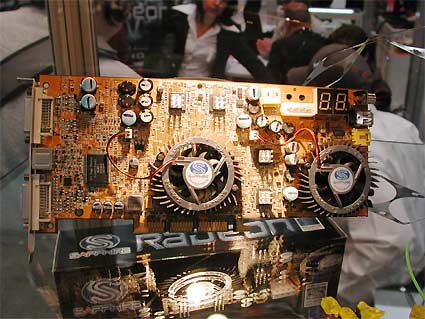在2003年的一些大展中,蓝宝展示了一款双RADEON 9800 PRO芯片的奇怪显卡,据说这款显卡配备了双DVI接口,并且搭配了512MB的显存。当时这款产品的出现估计连ATI都会感到吃惊,因为连ATI原厂目前都没有这样的产品出现,不过可惜的是这款显卡将不会正式销售。似乎也没有人见到该显卡真正的运行过。