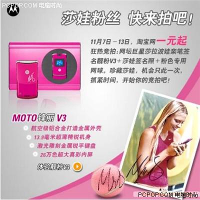 2004年温布尔登网球公开赛冠军得主玛丽亚-萨拉波娃代言了摩托罗拉公司的RAZR V3的靓粉版手机。