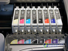 爱普生R800的墨水系统是在原来五色(黄色、洋红、青色、粗面黑、照片黑)的基础上添加了红色、蓝色和亮光色三种色彩从而达到八色系统的。增加的蓝色和红色墨水,使色域更宽广(更加接近sRGB);新型亮光色墨水,大大提高了颜料墨打印的光泽度。