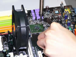 由于Magic-Pro A2N5并没有给予我们足够的启示,因此我们唯有真接嗽至的修改MSI K9N Platinum (nForce 570),采用K9N Platinum的主要原,是它的PCB设计与支援SLi的K9N SLi Platinum是共用的(MS-7250),因此Magic-Pro A2N5能以nForce 550达成SLi,那么MSI K9N Platinum也应该是100%可成功的,另一个原因是我们手上更有K9N SLi Platinum (nForce 570 SLi)方面对照,但无可否认的是我们编辑部就只有这一片不支援SLi的nForce 570,别无它选(笑)。我们把红圈那颗贴片电容从MCP55晶片上拿掉,并兴奋地拿去作测试,结果.................