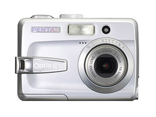 定位在家用便携机上的Optio E10,不支持防抖,该机的ISO也非常一般,最小64,最大200。此外,它还可拍摄分辨率为320x240/20Ffps的有声短片。在电源 方面,Optio E10采用两节AA电池供电,在装上标配的10MB存储卡和电池的情况下,机身重量达180克。
