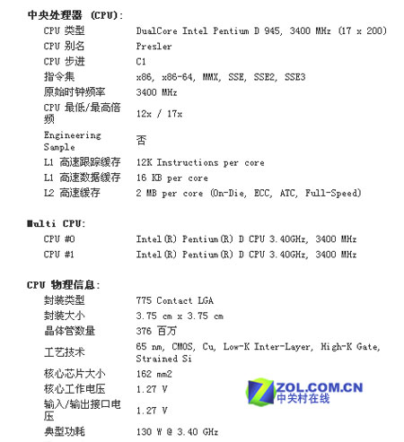【图】Pentium D 945处理器信息