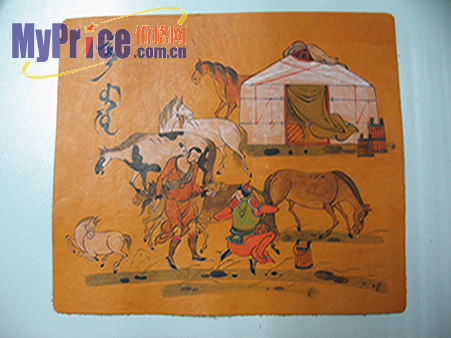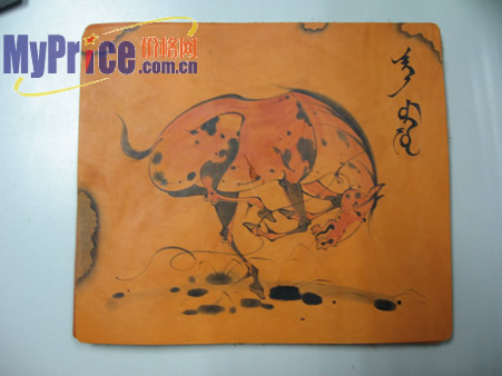 猛看上去,这款鼠标垫还真有点反璞归真的味道,比较方正。整个背景颜色为棕黄色,色泽与质地相当的不错。据德尔宏祥的销售人员介绍这款鼠标垫是蒙古生产的,全部为手工制作,做工也十分的精细,在鼠标垫的正面上是手工绘出的各种具有蒙古风情的图案,栩栩如生,给人一种古朴高雅的感觉,而且这些图案各有不同,看上去非常的有个性,并有一种复古的味道。