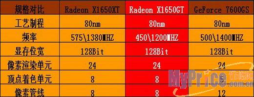 1650XT、1650GT、7600GS性能参数对比