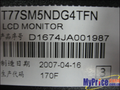 从后面的标签可以看出这款TCL 170F的生产日期是2007年4月16号。