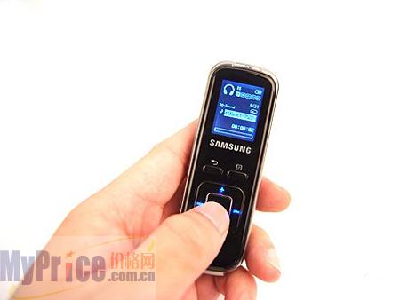 在外观上,三星YV-150时尚的外观一改传统的录音笔造型,整体个机身精致小巧而且机身周边非常圆润,手感极佳,在色调上银色钩边与黑色机体搭配也显得非常的稳重,大方。