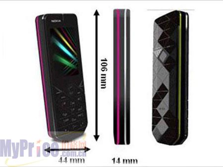 可以说诺基亚这几年在外形设计上屡有新作,它不像摩托罗拉般一成不变得换汤不换药,从绝色倾城开始,诺基亚便屡屡给人耳目一新,今天上市的7500也进行了大胆的尝试,宝石切割工艺设计理念,让该机“星光熠熠”,同时也因为宝石的奢华,使该机凭添了几分高贵的气质,该机机身尺寸为106×44×14mm,采用黑色为底色,在机身侧边配有不同颜色的彩带,看上去十分抢眼炫目。
