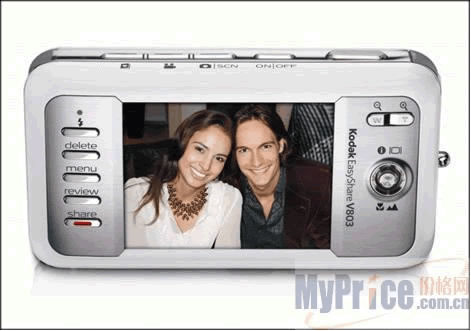 数码相机越来越普及,价格也越来越便宜,现在主流家用机的售价已经降到2000元左右。柯达为V803配备的都是主流配置,800万像素,2.5英寸LCD,时尚的机身设计,多种机身色彩的选择,加上其不俗的高性价比都为V803增添竞争力。