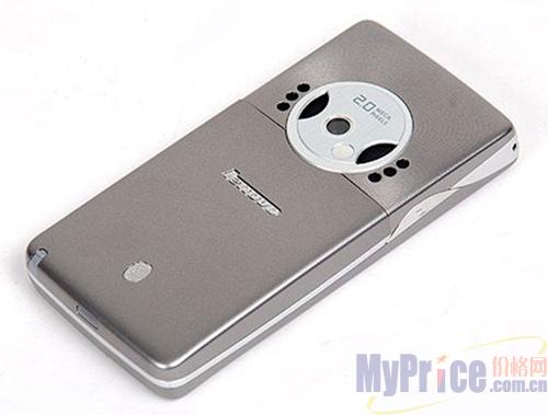 i910手机的背部设计同样朴实无华,同样是银灰色的喷漆,但上部采用螺旋纹设计,很好的起到了耐磨的作用。而200万像素的摄像头被银白色的圆盘包裹,又有圆盘是突出来的,很好的保护了镜头,用户安全不用担心镜头划伤等问题的出现。摄像头左右各有一个扬声器,音色高亢洪亮。电池后盖上印有联想“Lenovo”和“乐”的LOGO。