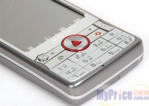 联想这款手机上,有4个有趣的快捷键,分别在手机的顶部、左软键和关机键的右侧,设计很新颖。上部的两个快捷键分别是游戏的确认和终止键,很像FC时代手柄上的“SELSCT”和“START”两个键。而多媒体快捷键在左软键上,以圆点造型出现,其功能可以打开手机的媒体中心,方便用户进行多媒体浏览。