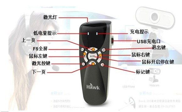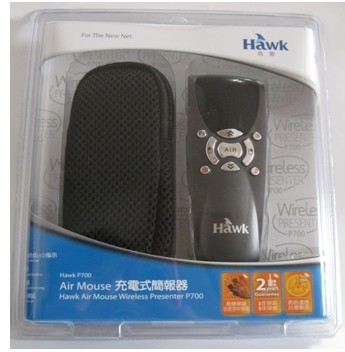 Hawk P700多功能简报器是一款非常实用的产品,通过2.4GHZ无线传输达到了鼠标的功能及翻页笔,可以无限自由操作。而再通过模式切换,可以让HAWK-P700多功能简报器在所有的PPT简报发挥自如,会议演示时极为便捷。