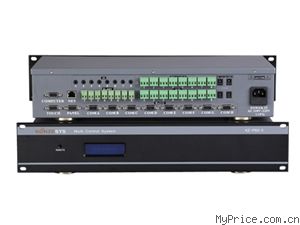 参数说明:PROII主机具有墙上面板,无线触摸屏控制,有线触摸屏,电脑软件,网络集中管理等控制方式PROII主机主要具有8路RS232通讯口(带奇偶校验),每路可以级联5台以上通讯设备PROII主机主要具有8路RS485通讯口(带奇偶校验),每路可以级联5台以上通讯设备PROII主机主要具有8路红外控制控制口,可编程定义控制红外设备PROII主机主要具有8路弱继电器口控制,编程定义PROII主机主要具有8路I/O口控制,用于外部触发PROII主机主要具有4路DC12V电源输出口,用于给外部设备提供电源PROII主机主要具有LCD显示屏,待机画面可编程,各控制口的状态显示PROII主机内置网络模块接口,可选配网络控制模块,驳接网络交换机进行网络远程控制电源范围:AC:110-280V整机尺寸:435*235*90