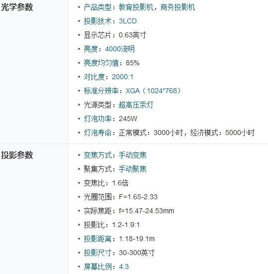 松下 BX40商教投影机采用了3LCD投影技术,配有1.6倍手动变焦镜头,支持1024×768标准分辨率,亮度为4000流明,对比度达2000:1,省电模式灯泡寿命长达5000小时,梯形校正角度在自动模式下为±20度,支持正投、背投、吊顶等多种投影方式,噪音水平低至29分贝,在课堂上几乎察觉不到声音,不会影响学生们专注的注意力。