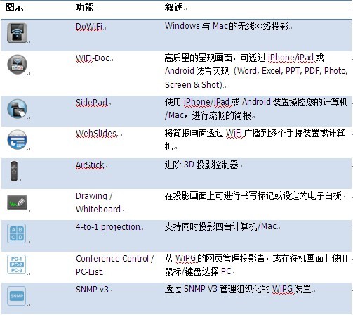 l Plug&Show:从USB随身碟可直接执行投影程序,不需进行安装